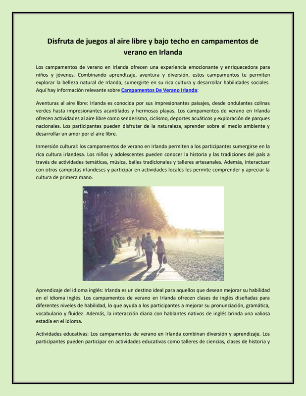 Disfruta De Juegos Al Aire Libre Y Bajo Techo En Campamentos De Verano En Irlanda
