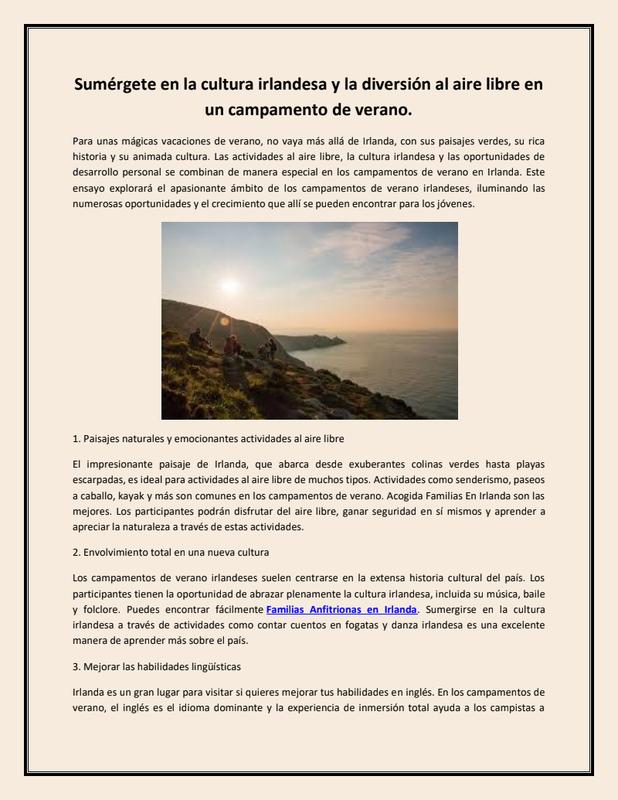 Sumérgete En La Cultura Irlandesa Y La Diversión Al Aire Libre En Un Campamento De Verano